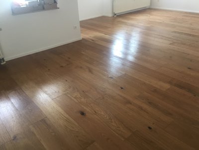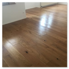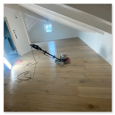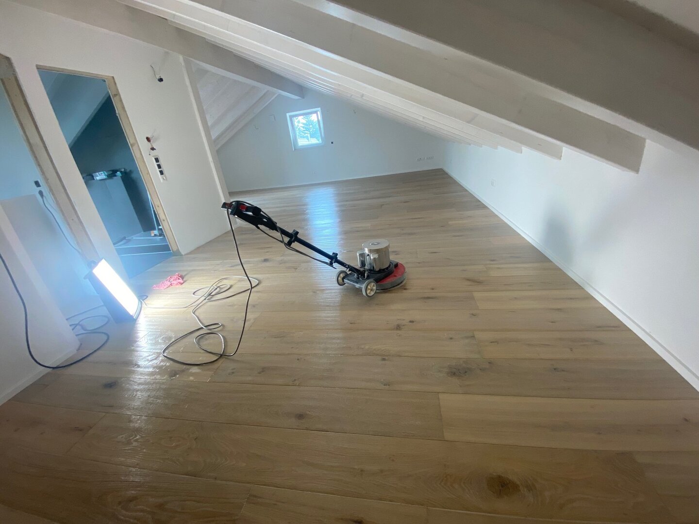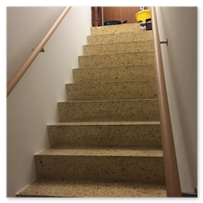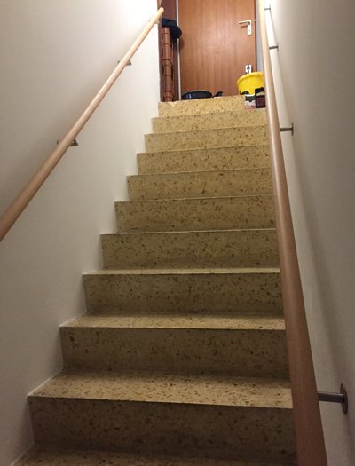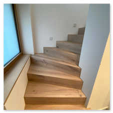 Hier wurden 15 Treppen- und Setzstufen abgeschliffen, grundiert und mit 1K- bzw. 2K-Lack neu versiegelt.